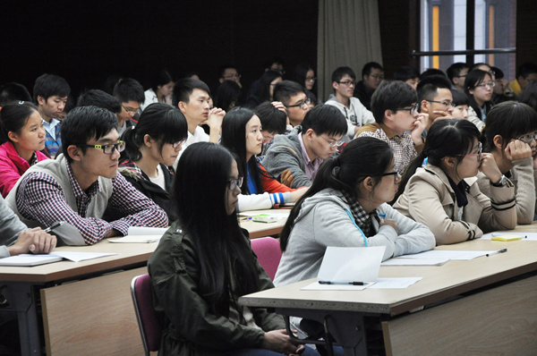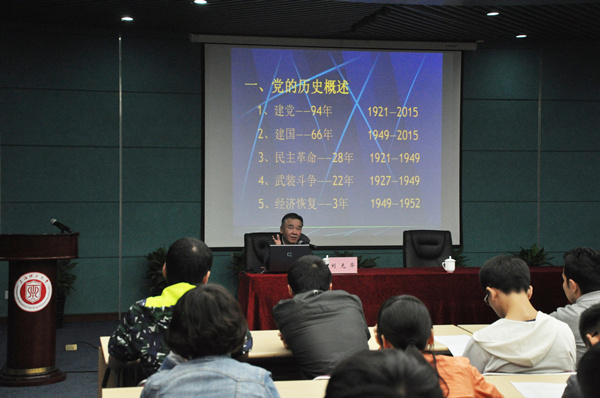 10月30日下午,b体育sports官方网站2015年入党积极分子培训班在图文信息中心第一会议室正式开班,副院长张学典致开班词,党建专家刘光华教授应邀出席,并为学员们做了第一期党课报告。 张学典首先对在座学员成为入党积极分子表示祝贺,提出本次培训的目的在于帮助入党积极分子更好地掌握党的基本理论和基础知识,坚定理想信念、加强党性修养,提升科学思考和规划未来的能力。 刘光华教授的党史报告一改传统模式,不直接切入党史的介绍,而是首先以毛主席的诗词切入,“望长城内外,惟余莽莽,大河上下,顿失滔滔”,带领全体学员进行吟诵,通过生动的诗词让学员们深入了解毛主席,增强对党的认识。然后,刘光华教授向全体学员系统地介绍了党史党建,他理论联系实际,旁征博引,深入分析了中国共产党各个时期的发展情况。最后,刘教授还对习近平总书记最新一次面对全党的讲话进行了深入解读,让全体学员们对于党在新时期的新气象有了进一步的认识。 时间就在刘教授生动的报告中不知不觉过去,大家纷纷表示,刘教授的报告深入浅出,立意高远,整个报告向我们传递了我党“理论联系实际、密切联系群众、批评与自我批评”的三大作风以及新时期的新气象,很受启发,大家都希望以这次培训作为契机,在今后的学习生活中严格要求自己,争取早日能够成为其中的一员。