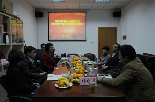 朱莉首先代表学院对杭师大国际服务工程学院谢琪院长一行的到来表示热烈欢迎,并简要介绍了学院的发展情况。双方就学科建设、科学研究、服务地方、专业建设、人才培养、国际合作办学等方面进行了交流。会后,双方还互赠了小礼品作纪念。