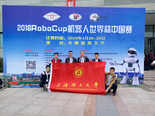 Robocup机器人世界杯中国赛由中国自动化学会机器人竞赛工作委员会 、Robocup中国委员会主办。来自清华大学、台湾科技大学、上海交通大学等近60所高校300余名师生参加此次比赛。“尚理沪江”队是由光电信息与计算机工程学院组队参赛,队员分别为:许金波、刘通、程权、韩太军、方波。