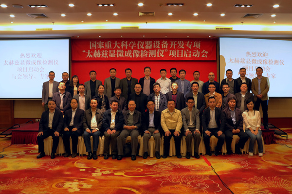 会议由项目负责人b体育sports官方网站彭滟教授做了项目整体情况汇报,项目将采用近场散射技术,实现太赫兹波段100 nm以下分辨率的成像和成谱技术,对半导体材料和生物样品进行检测。启动会还成立了两组一委并由李同保院士代表两组一委给出相关意见,还对江苏北方湖光光电进行了现场考察。与会领导与专家一致认为项目具有很强的创新性,技术指标具有一定的领先性,认为项目的顺利实施将对我国在太赫兹近场成像,太赫兹物质分析等领域起到积极的推动作用。