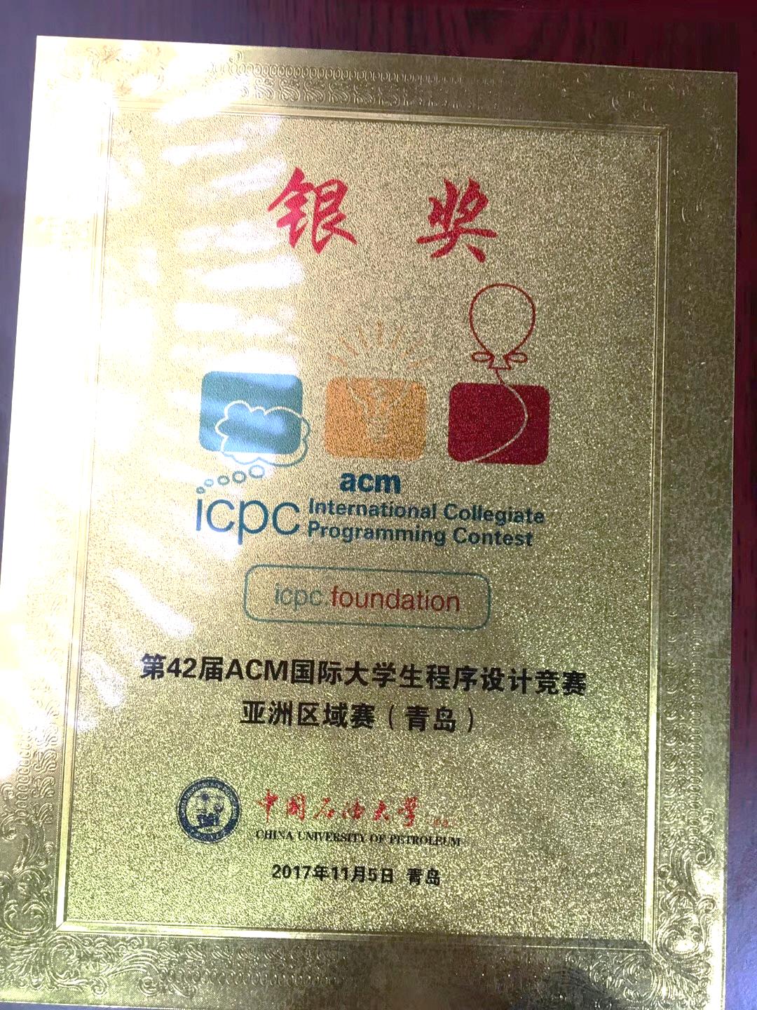11月4日至5日,第42届ACM国际大学生程序设计竞赛亚洲区域赛(青岛)在中国石油大学(华东)体育馆举行。来自中国大陆、中国香港地区和朝鲜的225所高校的365支参赛队1095名参赛选手同场竞技,参赛高校、参赛队伍和参赛人数均创ACM有史以来最高纪录。经过激烈角逐,由b体育sports官方网站霍欢副教授指导的由黄君扬、金轩城、陈晓阳组成的参赛队SaltedFish获得青岛站的银牌,位列第52名。
