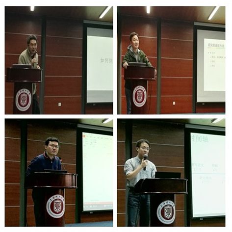 第二场会议的主题是太赫兹信息和超快测量方向,分别由陈麟老师和戴博老师介绍了在各自研究领域的科研经验及论文撰写方法,报告会由测试系秦川老师主持。陈麟老师以“论文撰写介绍”为题,给同学们介绍了如何撰写一篇高质量的SCI论文,从论文选题,摘要,内容,参考文献等细节详细介绍了SCI论文写作的特点,同时还简要介绍了英文科技论文的语法和句式,并结合自己的投稿经历介绍了如何投稿国外期刊,如何回复审稿人意见等。戴博老师以“一篇论文”为题,他向学生们详细介绍了论文写作时每个章节撰写的要领,以及投稿时每个环节需要注意的细节。并与学生一起浏览了一篇微纳加工领域及一篇生物检测领域的文献,通过文献阅读,指导学生如何阅读论文以及如何撰写,详细介绍了论文中如何绘制插图、选择标题、凝练摘要、安排全文结构等。
