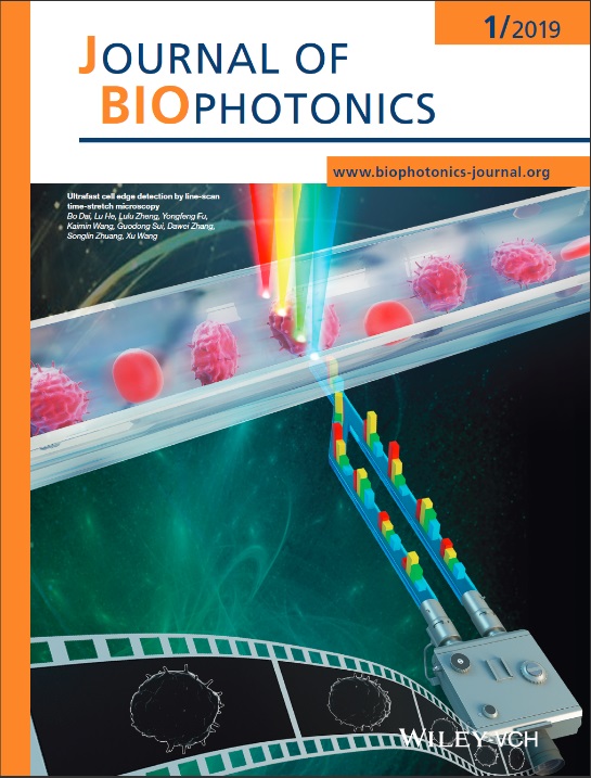 2019年1月8日,张大伟教授课题组在生物光子学知名学术期刊Journal of Biophotonics发表了论文《Ultrafast cell edge detection by line-scan time-stretch microscopy》,并被选为期刊封面论文。论文第一作者为课题组戴博副教授,论文链接:https://onlinelibrary.wiley.com/doi/abs/10.1002/jbio.201800044