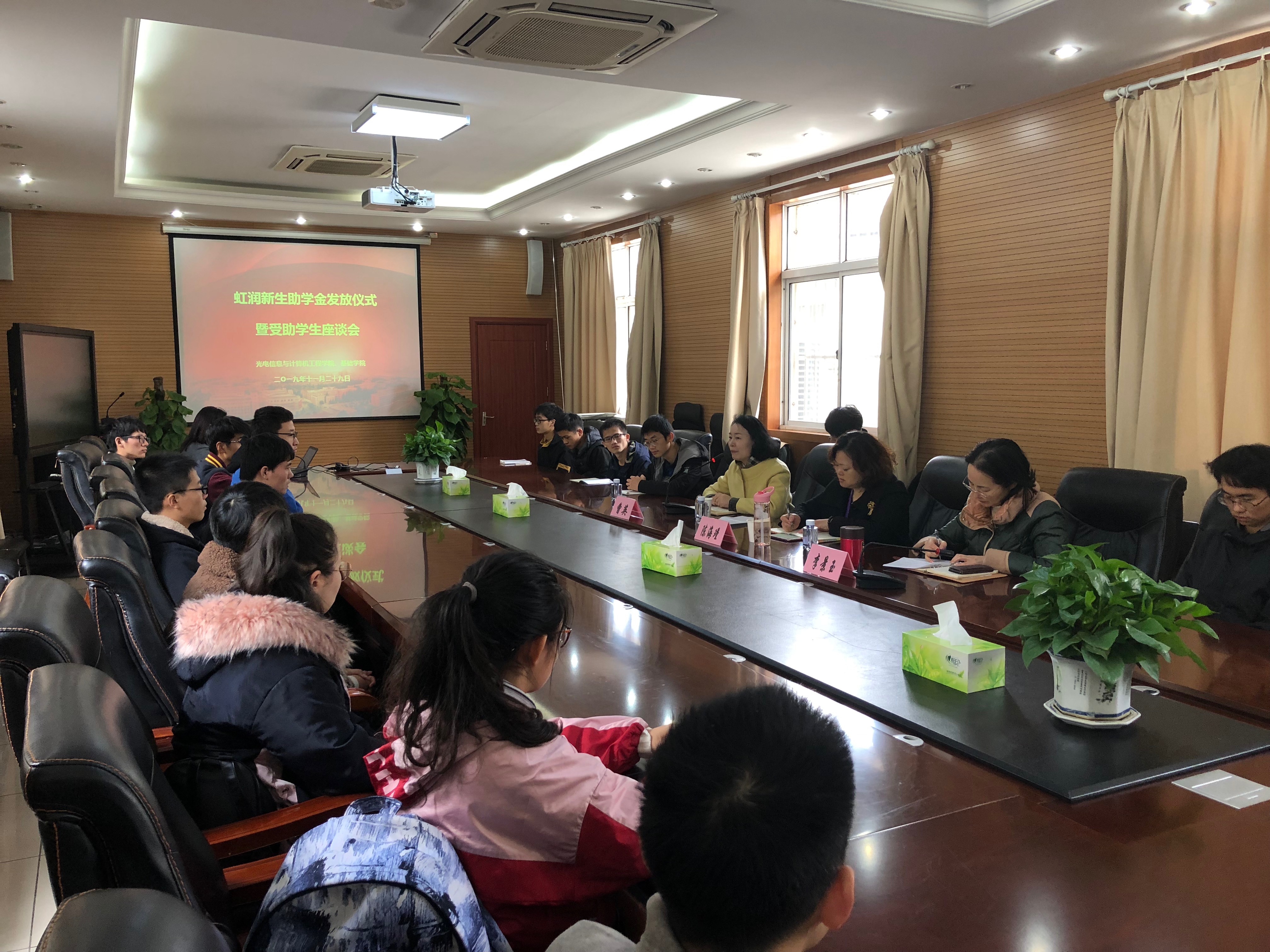 11月29日,b体育sports官方网站与基础学院共同召开虹润新生助学金发放仪式暨受助学生座谈会。b体育sports官方网站党委书记陈海瑾、基础学院党总支书记李景玉、b体育sports官方网站党委副书记曹英、相关专业辅导员及全体受助学生参加座谈会。