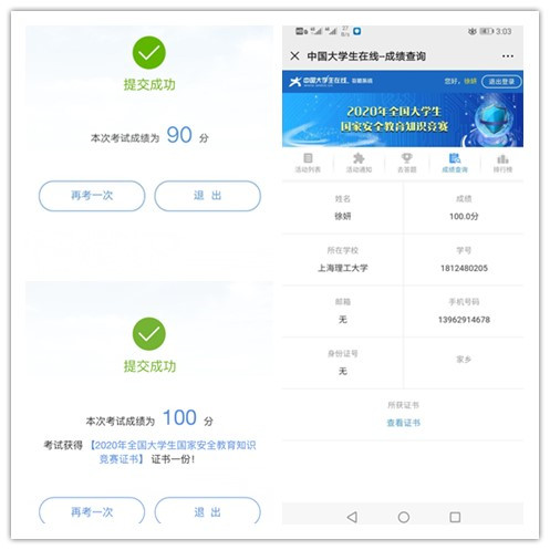 为强化青年大学生总体国家安全观的学习效果,充分发挥现有网络教育资源育人优势,积极构建组织、网络、朋辈育人协同,b体育sports官方网站以2020年全国大学生国家安全教育知识竞赛为抓手,开展大学生总体国家安全观教育。一方面,加强入党积极分子教育培养,充分朋辈育人优势,构建党建育人、网络育人、朋辈育人有机协同,本科学生党支部组织组织入党积极分子参加2020年全国大学生国家安全教育知识竞赛和学习强国知识竞赛。另一方面,发挥班级、团支部组织育人功能,学院各班级、团支部积极号召同学在线参加2020年全国大学生国家安全教育知识竞赛。截止当日,学院共有1000名研究生、本科生在线参加2020年全国大学生国家安全教育知识竞赛。