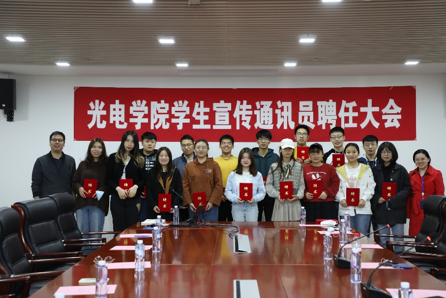 10月23日上午,b体育sports官方网站第一届学生宣传通讯员聘任大会暨第一期讲座培训在光电大楼1042会议室召开。b体育sports官方网站党委书记陈海瑾出席并致辞,党委副书记何可为学生宣传通讯员颁发聘书。同时,特别邀请校宣传部董真老师为学生宣传通讯员进行第一期媒体素养培训。
