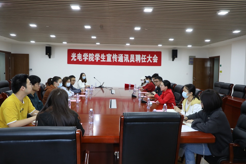 何可在聘任大会发言中强调,学院成立学生宣传通讯员对提高学院宣传水平,进一步加强学院影响力至关重要。学生宣传通讯员作为b体育sports官方网站第一支以学生为主的宣传团队,肩上背负着特殊的历史使命。他对学生宣传通讯员提出两点要求,一是要不拘于形式,深度挖掘光电新闻;二是要提高新闻敏锐性,凝练光电品牌特色。