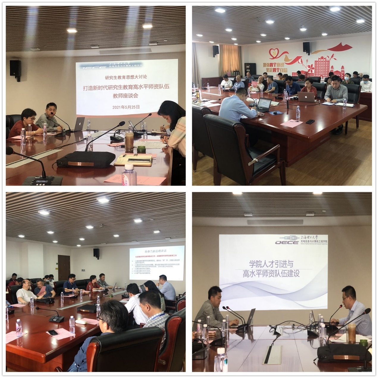 彭敦陆首先向与会人员介绍了本次研究生教育思想大讨论的背景、意义、相关文件及学院活动安排。王张琦传达了国家、上海市及学校研究生教育会议精神,解读了b体育sports官方网站研究生教育思想大会的主要内容和实施细则。副院长刘伟总结了学院“十三五”期间人才引进工作情况,报告了“十四五”人才引进工作计划和师资建设措施及2021年人才引进工作具体做法。控制系系主任王朝立教授、光电系系主任郭汉明教授、计算机系系主任杨桂松副教授、信息与通信工程学科带头人杨晖教授、计算机科学与技术学科带头人陈庆奎教授及青年教师代表进行了发言。老师们感谢学校和学院在研究生师资队伍建设方面给予的支持,并对取得成果表示认可,随后大家围绕如何打造新时代研究生教育高水平师资队伍积极建言献策。学院将以高水平大学建设为契机,引育结合,落实“人才强校”主战略。一方面,加大高水平人才的引进力度,另一方面,注重存量师资的培养,构建层次更加合理的高水平师资队伍,更好地服务学院研究生教育与培养工作。