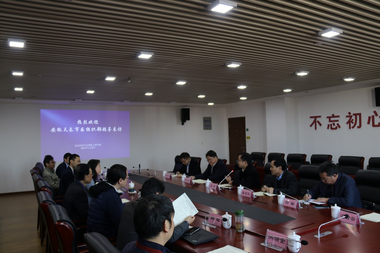 11月9日上午,安徽省天长市委常委、组织部长王林率天长市委组织部、发改委、科技局、人才办负责人一行来访b体育sports官方网站并举行交流座谈会。b体育sports官方网站院长、中国工程院院士庄松林、学校党委组织部副部长谢锡浩、b体育sports官方网站其他班子成员、部分学科教授出席。座谈会由学院党委书记袁媛主持。