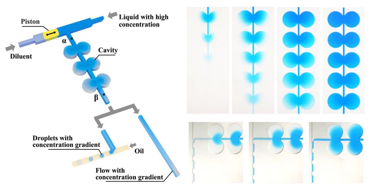 在化学和生物领域,特定的浓度梯度微环境可以被应用于晶体生长、药物筛选、免疫分析、仿生器官培养等方面。诸多研究工作报道了各类浓度梯度的生成方案,但是都无法实现超长线性浓度梯度。