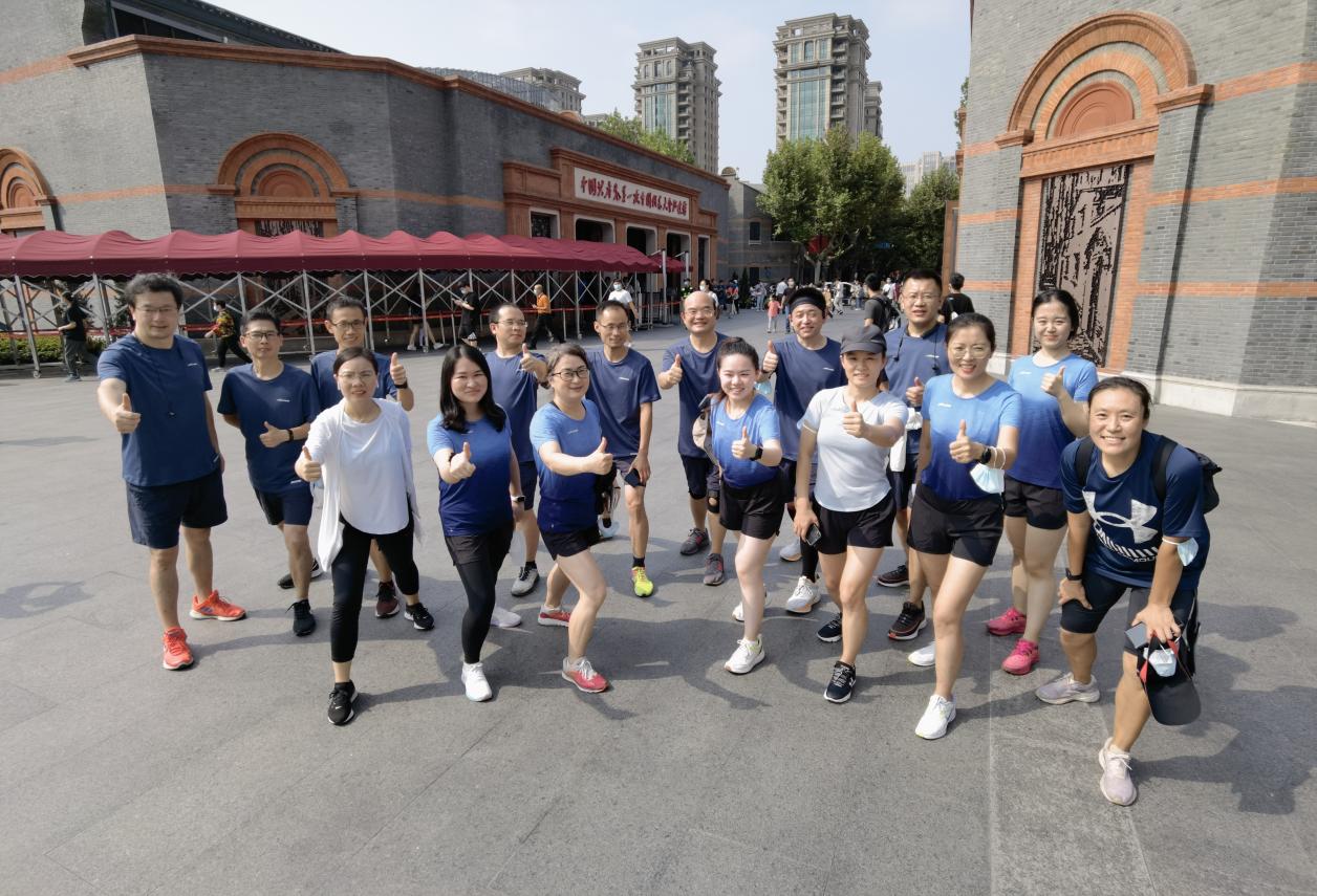 活动当天,最高气温达到了31℃,跑团成员坚持不懈,以昂扬的奋进姿态和饱满的精神活力,共同完成了“10.1”的跑步路线图。柳强老师分享了参与健康跑活动的感受:“跑步不仅是一项运动,还是一个挑战自己的过程,正值祖国73岁生日,这一场跑步变得更加有意义,我们用脚步丈量时代的进步,用踔厉奋进的姿态庆祝祖国的生日”。团长刘一谈道,“10月1日当天,从石库门出发,跑过百年前的上海滩,跑过林荫大道,跑过摩天楼观,最后在复兴路校区结束跑团首秀,具有特殊的意义,我们在复兴路上祝愿祖国繁荣昌盛。”