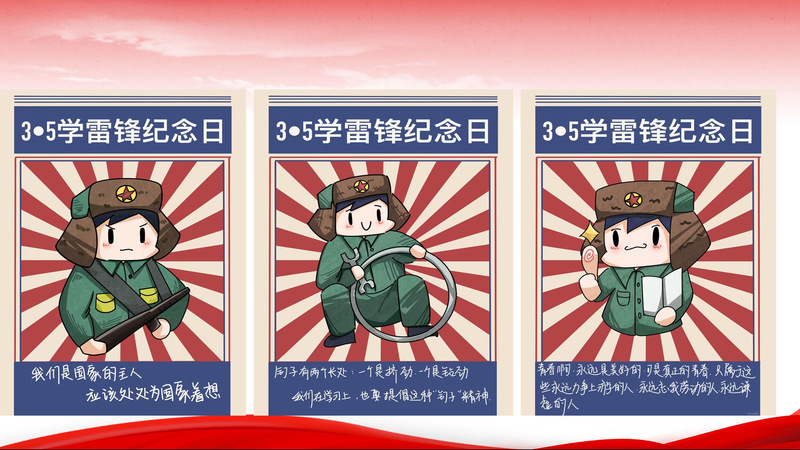 学习雷锋精神漫画党课主题党日