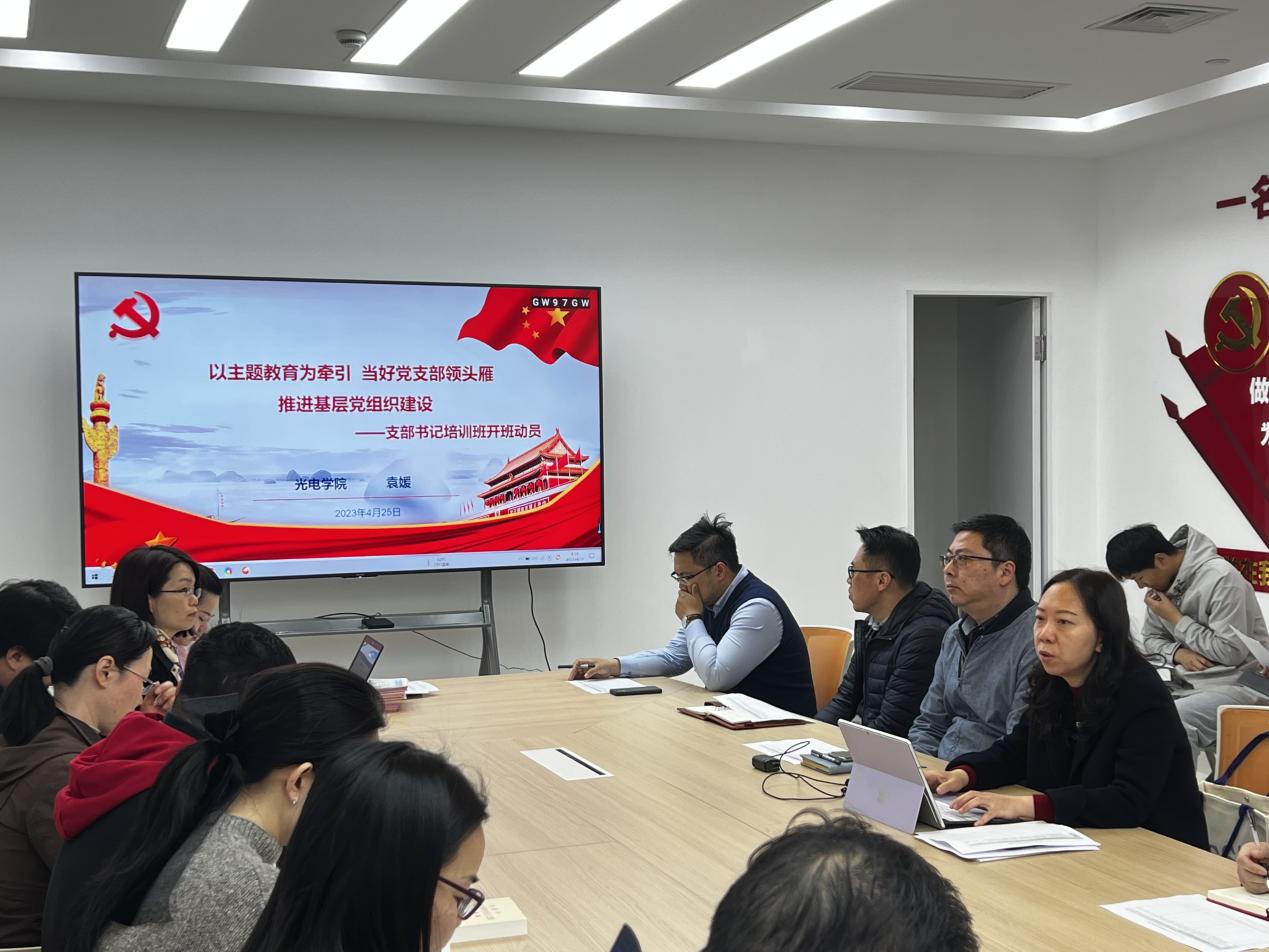 为深入学习贯彻习近平新时代中国特色社会主义思想和党的二十大精神,进一步发挥党支部书记“领头雁”作用,提高基层党支部书记履职能力,打造坚强有力的战斗堡垒,4月25日上午,光电信息与计算机工程学院党委在新建成的党员活动室里举行了党支部书记培训班开班仪式。学院党委书记、党委副书记、专职组织员参加了开班仪式。30名师生党支部书记全覆盖参加了培训。