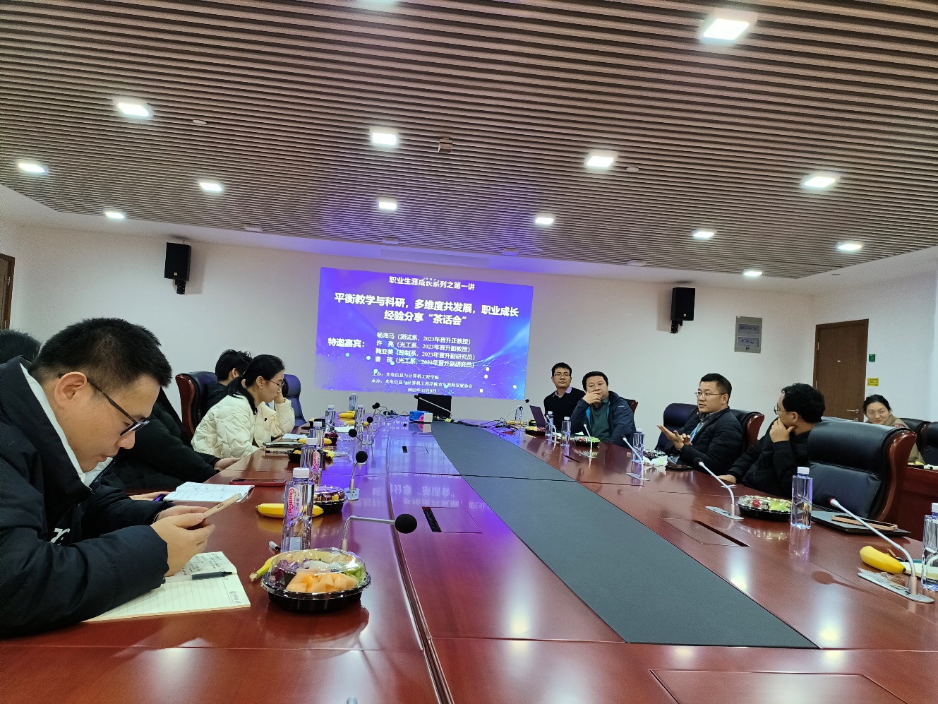 12月8日下午,在b体育sports官方网站1042会议室,b体育sports官方网站青年教师发展协会邀请本年度“不同序列”成功晋升职称的教师们与协会青年教师一起,举办了职业生涯成长系列“个人经验”分享与交流座谈茶话会活动。本次活动由b体育sports官方网站主办、学院青年教师发展协会承办,会议主题明确而贴合青年教师们的实际需求,让参会青年教师能够在轻松自在的氛围内畅所欲言、“问”之有序、言之成理、尚理“成长”。副院长刘鹏参加茶话会,茶话会由协会会长禹德朝主持。