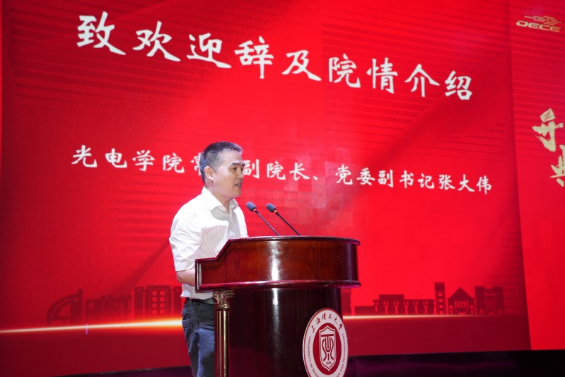 学院党务副院长、党委副书记张大伟向同学们介绍了学校和学院的发展历程,并从学术科研、师资队伍、人才培养和社会服务等方面介绍了学院近年来取得的可喜成绩。他指出,学院今后将持续以立德树人为根本任务,以国家重大战略需求为导向,放眼国际、对标先进,以刀刃向内的勇气和担当加快推进各项改革,推动学院事业发展迈向新台阶,为国家紧缺人才培养和关键技术突破而努力奋斗,他希望同学们要珍惜宝贵的求学机会,以“时不我待”、“强国有我”的精神和魄力时刻督促自己,以庄松林院士为榜样爱党爱国、甘于奉献,励精图治,全面发展,为国家现代化建设和中华民族伟大复兴不懈奋斗打下坚实基础。