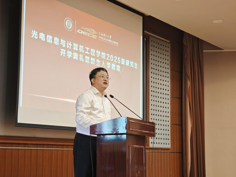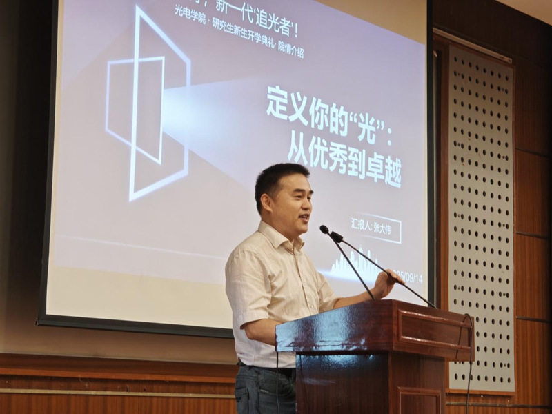 学院院长、党委副书记张大伟以“光电新时代,奋斗正当时”为题,向同学们介绍了学院发展近况与未来规划,并分享近期学科建设与科研创新方面取得的系列突破。站在新起点上,他向新生提出三点期望:勇于探索未知,突破学科边界;保持国际视野,追踪科技前沿;持续超越自我,实现多元成长。他勉励大家既要“追逐光”,更要“成为光”,以实际行动为国家光电事业贡献青春力量。