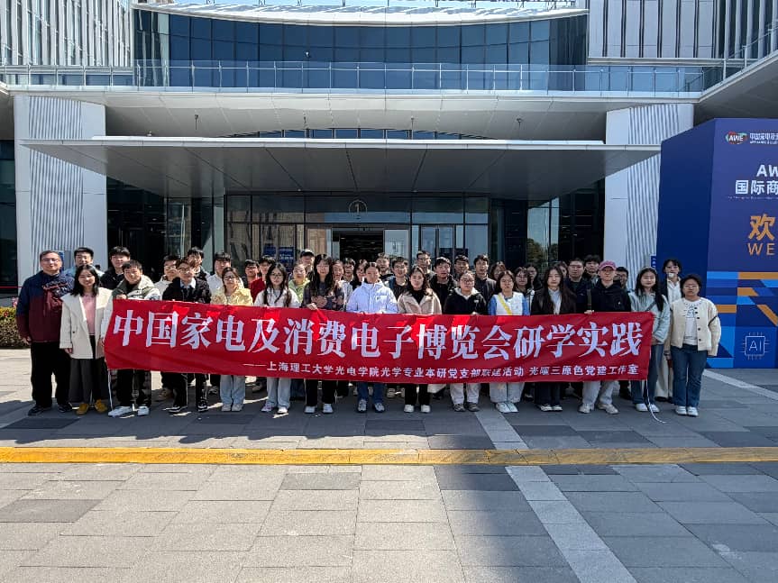 3月13日下午,为进一步拓展研究生对智能家电与消费电子产业前沿技术的认知,加深对电子信息领域发展趋势的理解,第三批全国高校“百个研究生样板党支部”光学工程(学硕)研究生党支部联合光学工程(专硕)研究生党支部、光学工程博士生党支部、光学工程(学硕)研究生第二党支部、光学工程(专硕)研究生第二党支部、本科生第一党支部以及光曜三原色党建工作室,前往上海东方枢纽商务合作区,参观AWE2026中国家电及消费电子博览会,全体成员通过实地调研与现场体验,近距离感受消费电子产业的创新活力与科技魅力。