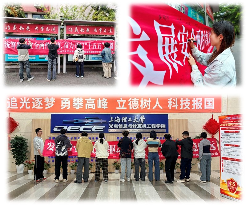 为深入贯彻落实党的二十大精神,迎接第十一个全民国家安全教育日,进一步增强师生的国家安全意识,b体育sports官方网站光电信息与计算机工程学院于4月13日-17日开展了为期一周的“统筹发展和安全,护航‘十五五’新征程”主题教育活动。本次活动旨在通过沉浸式教育与互动实践,引导师生将国家安全理念融入学科使命与个人发展之中。